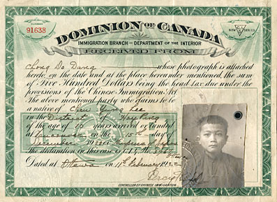 The Head Tax certificate of Chong Do Dang.